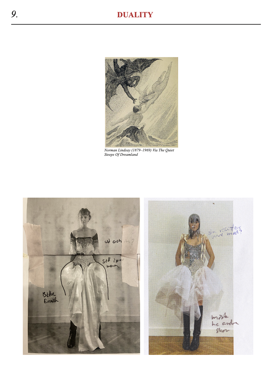 In her creative process, Mikaela has drawn inspiration from the mythical conflict called War in Heaven which describes Archangel Satan's conflict with God, leading up to his banishment to Christian Hell. Her work symbolises the contrasts between angel-like and demoniacal creations.