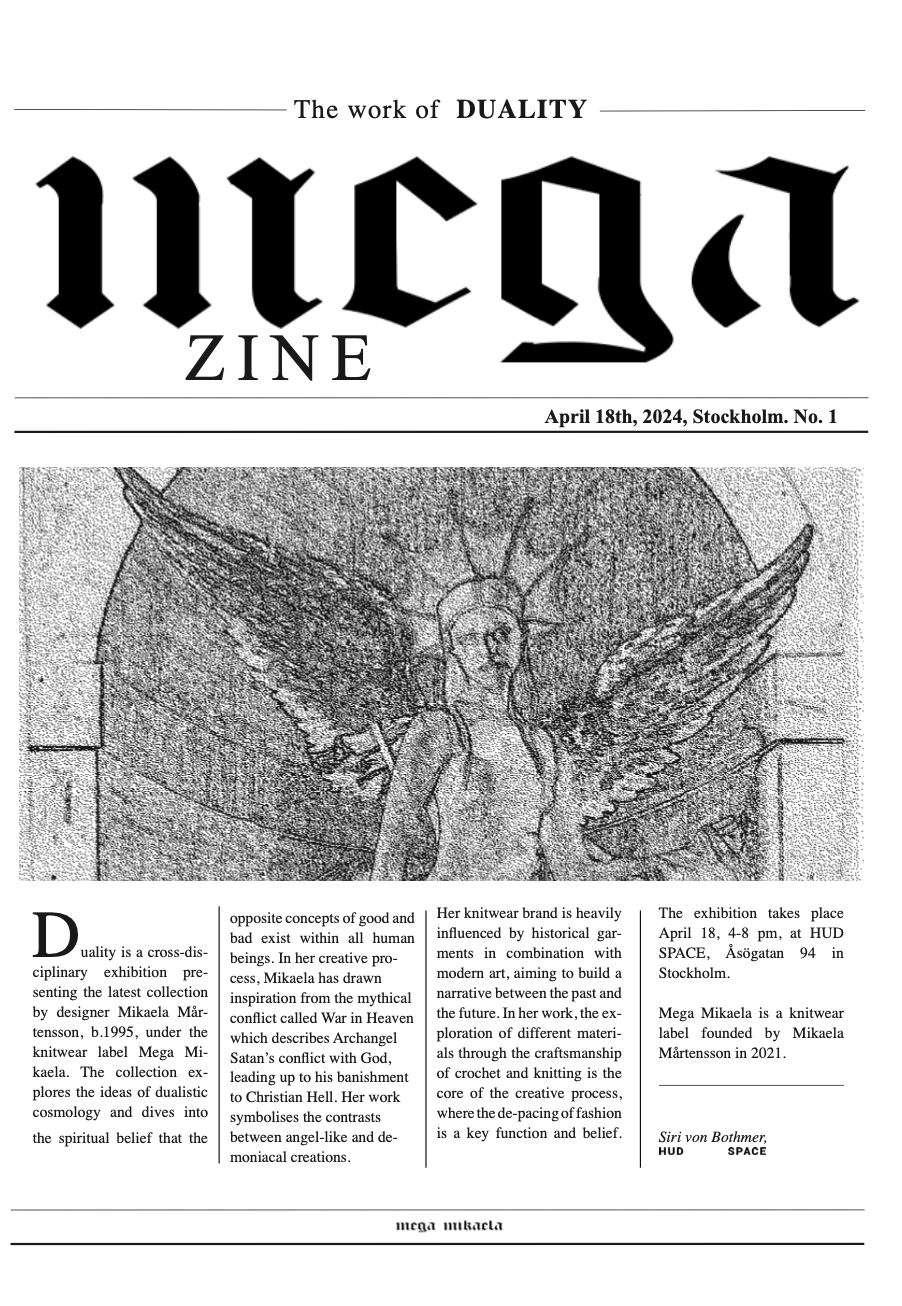 Duality is a cross-disciplinary exhibition presenting the latest collection by designer Mikaela Mårtensson, b.1995, under the knitwear label Mega Mikaela.